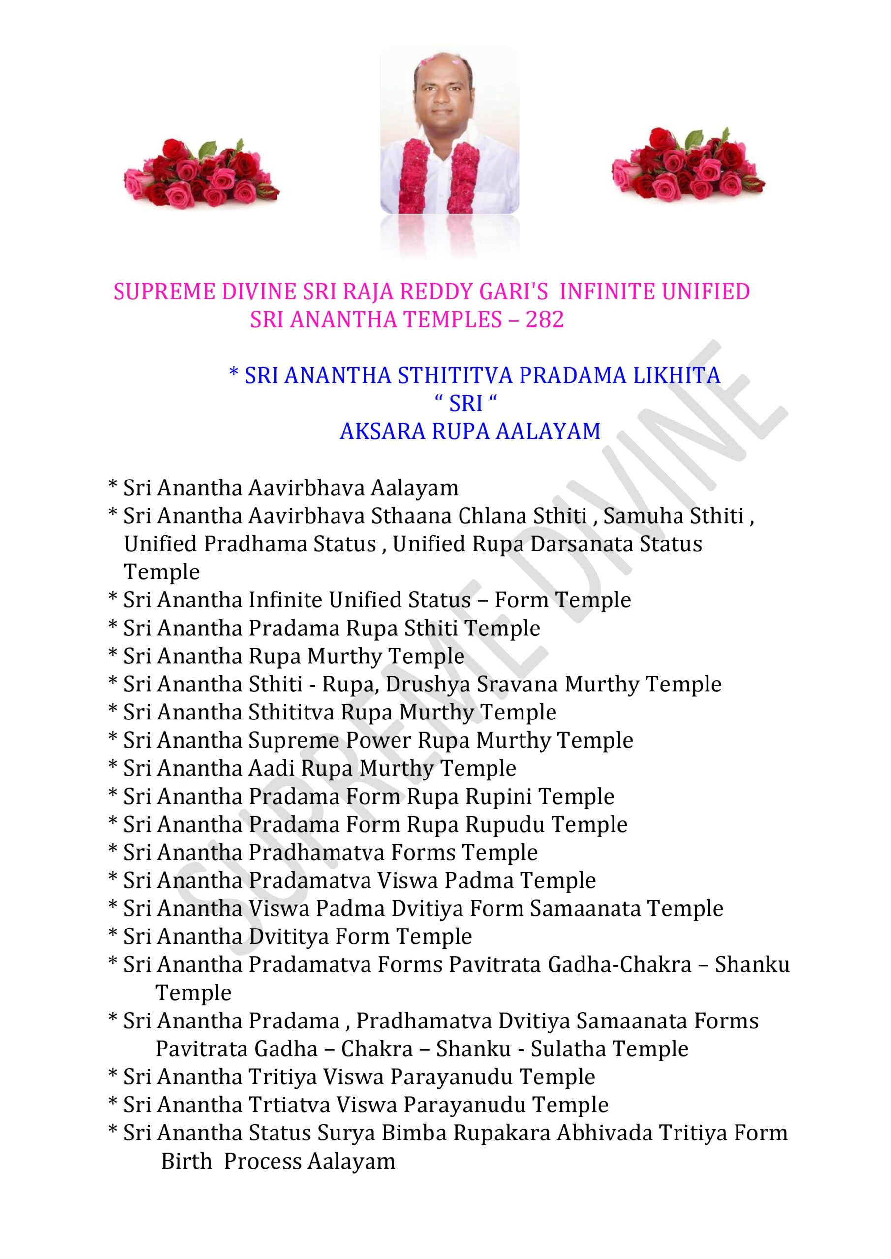 * Sri Anantha Infinite Unified Status – Form Temple