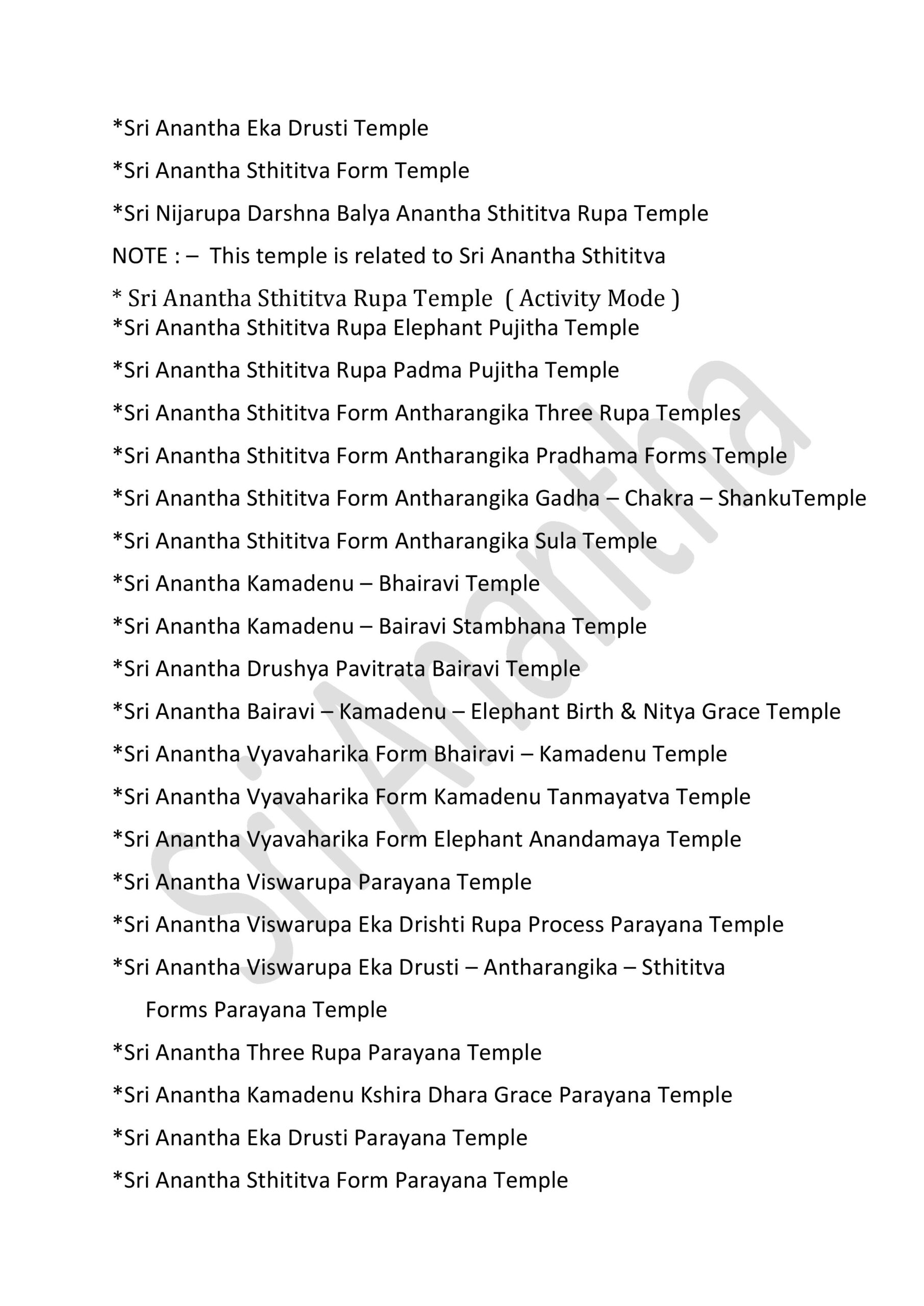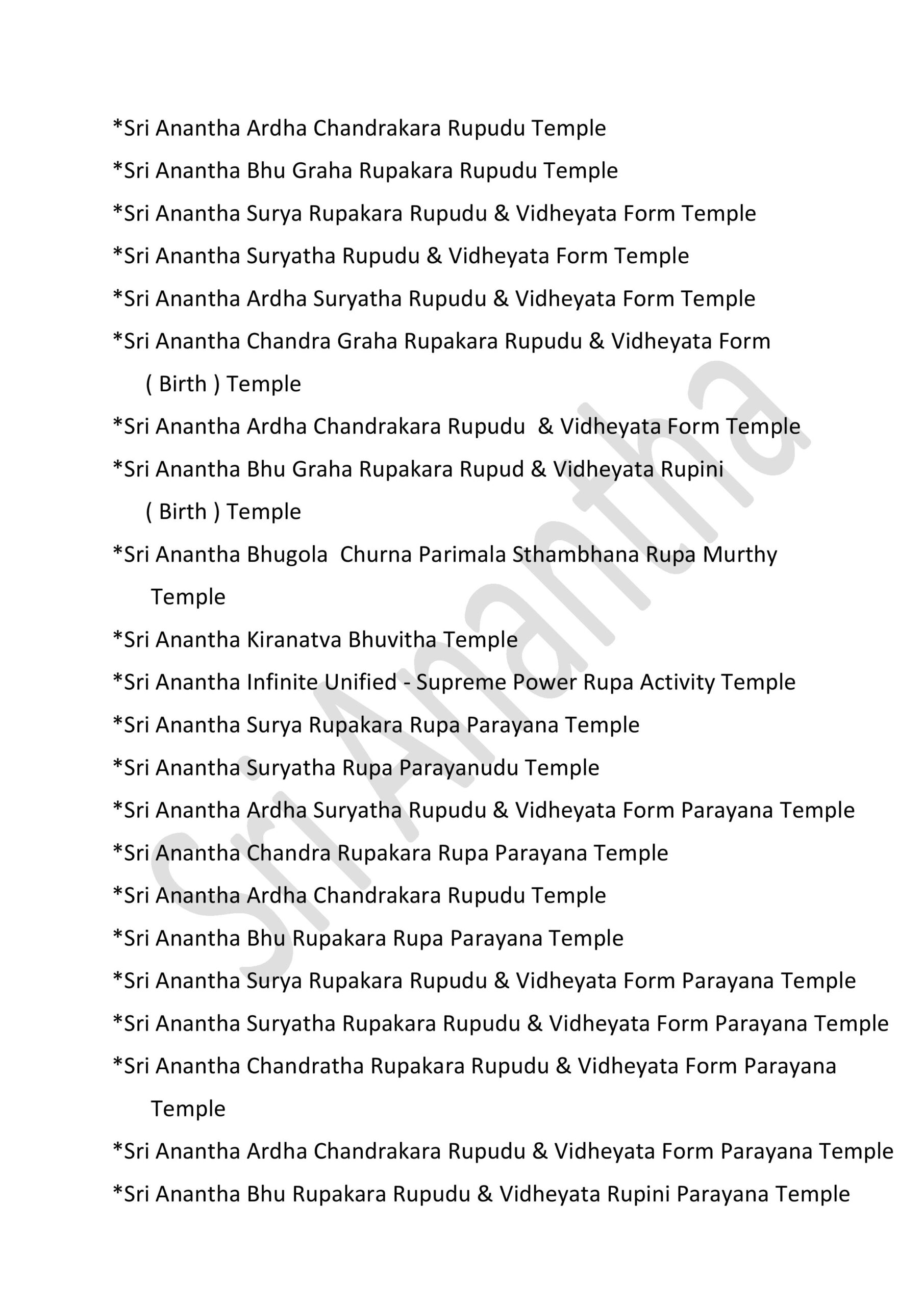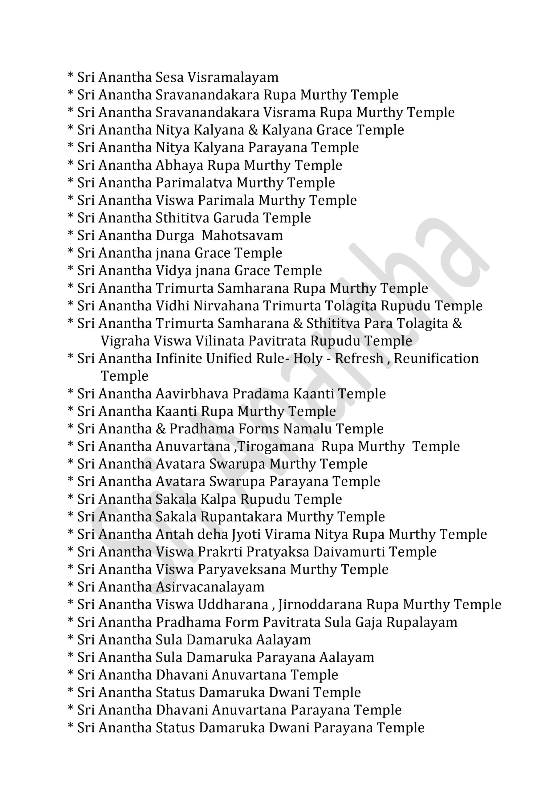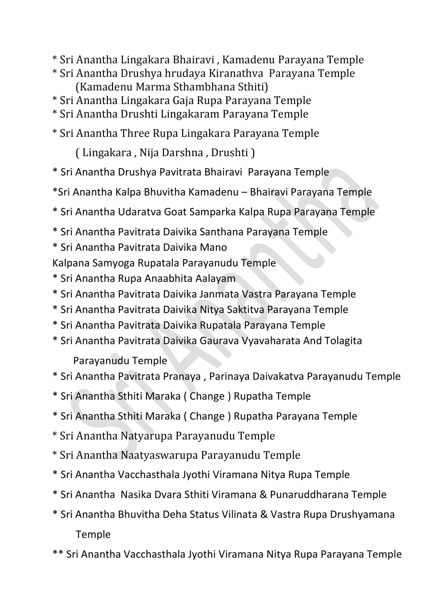 * Sri Anantha Pavitrata Daivika Santhana Parayana Temple