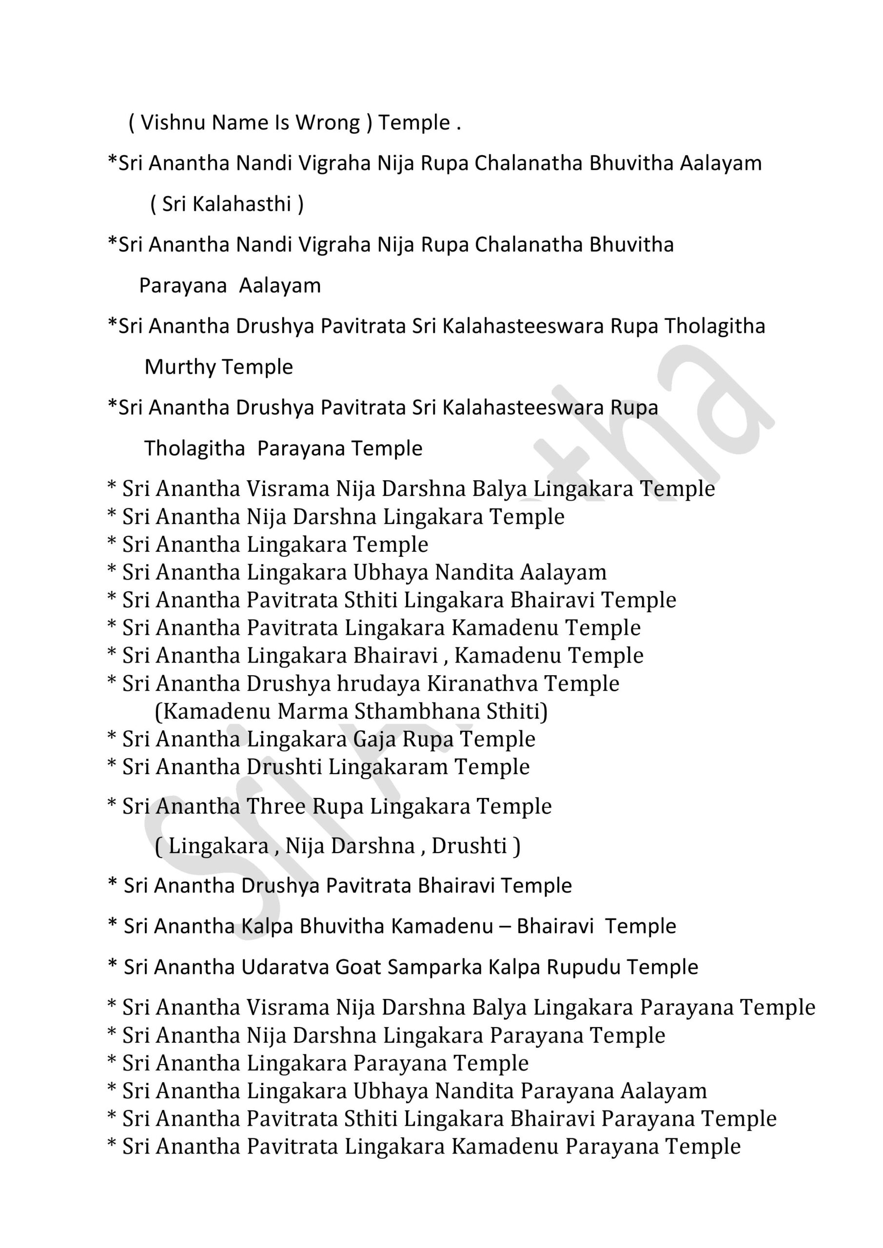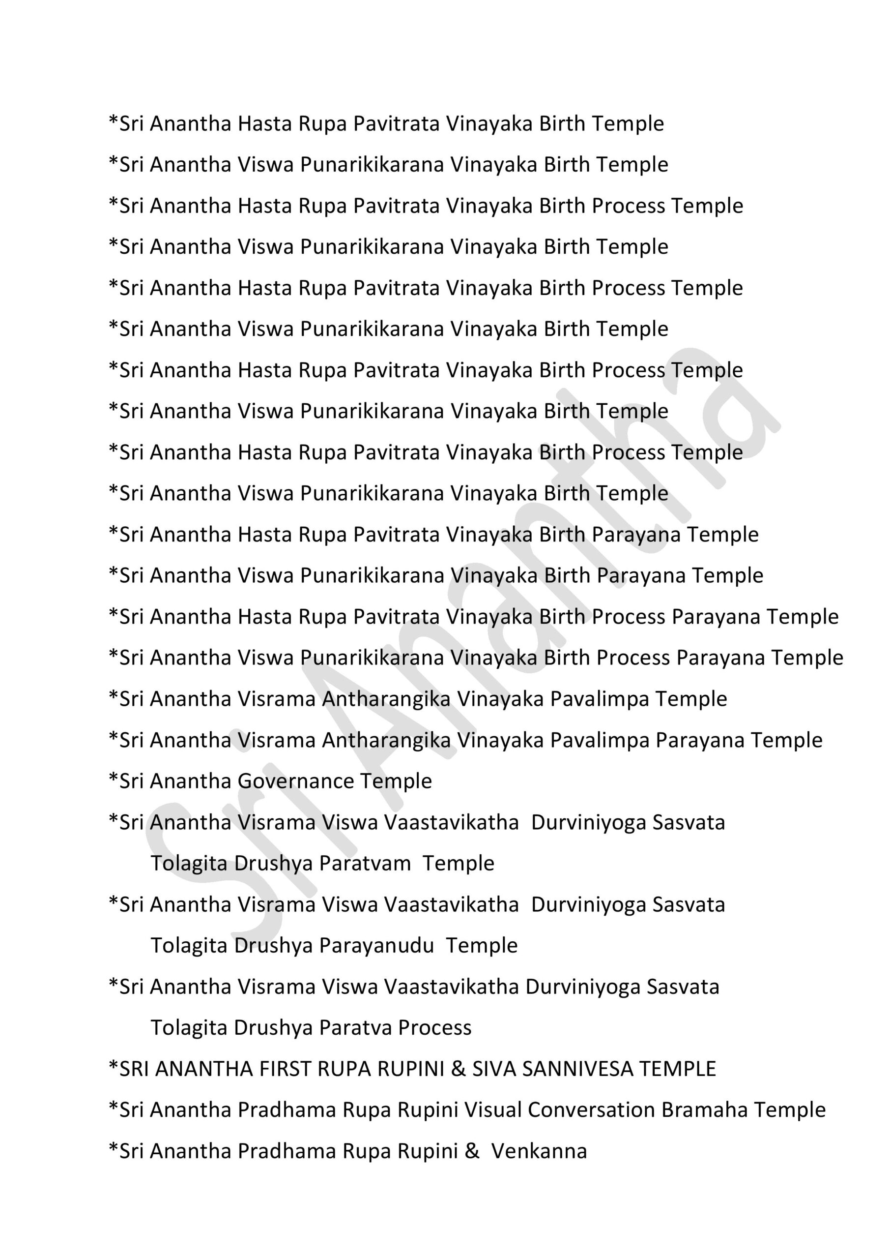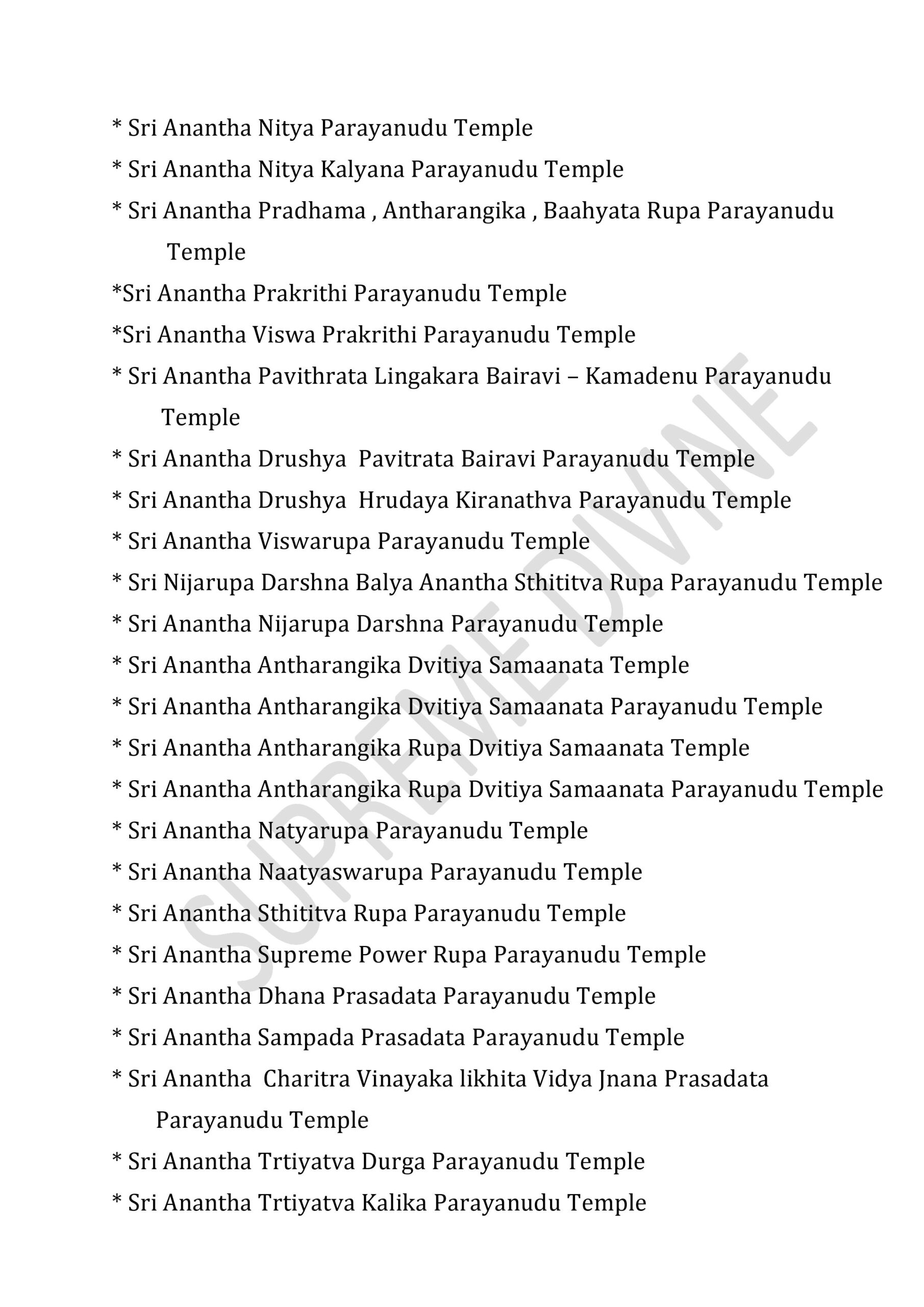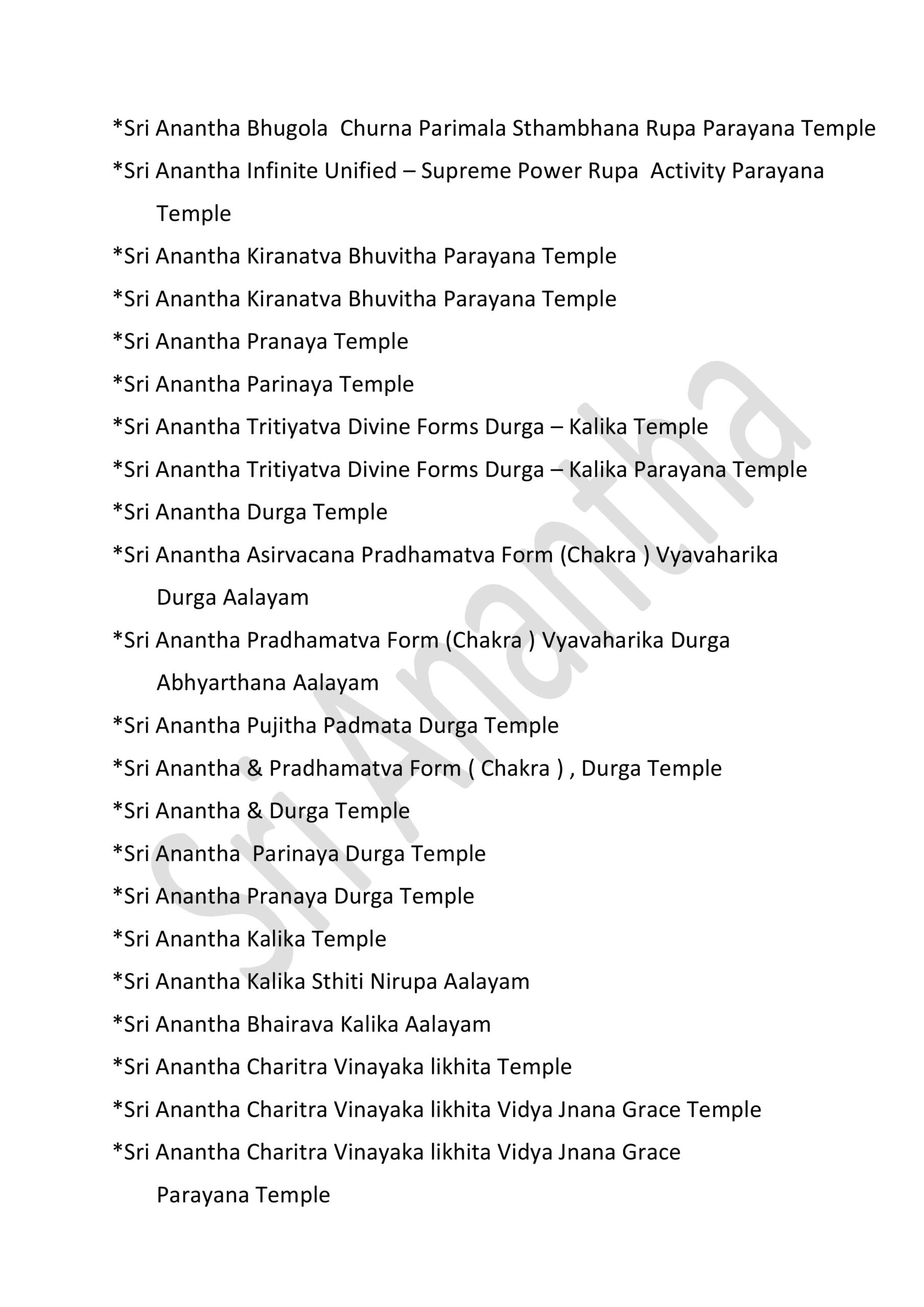 * Sri Anantha Pavitrata Daivika Santhana Parayana Temple