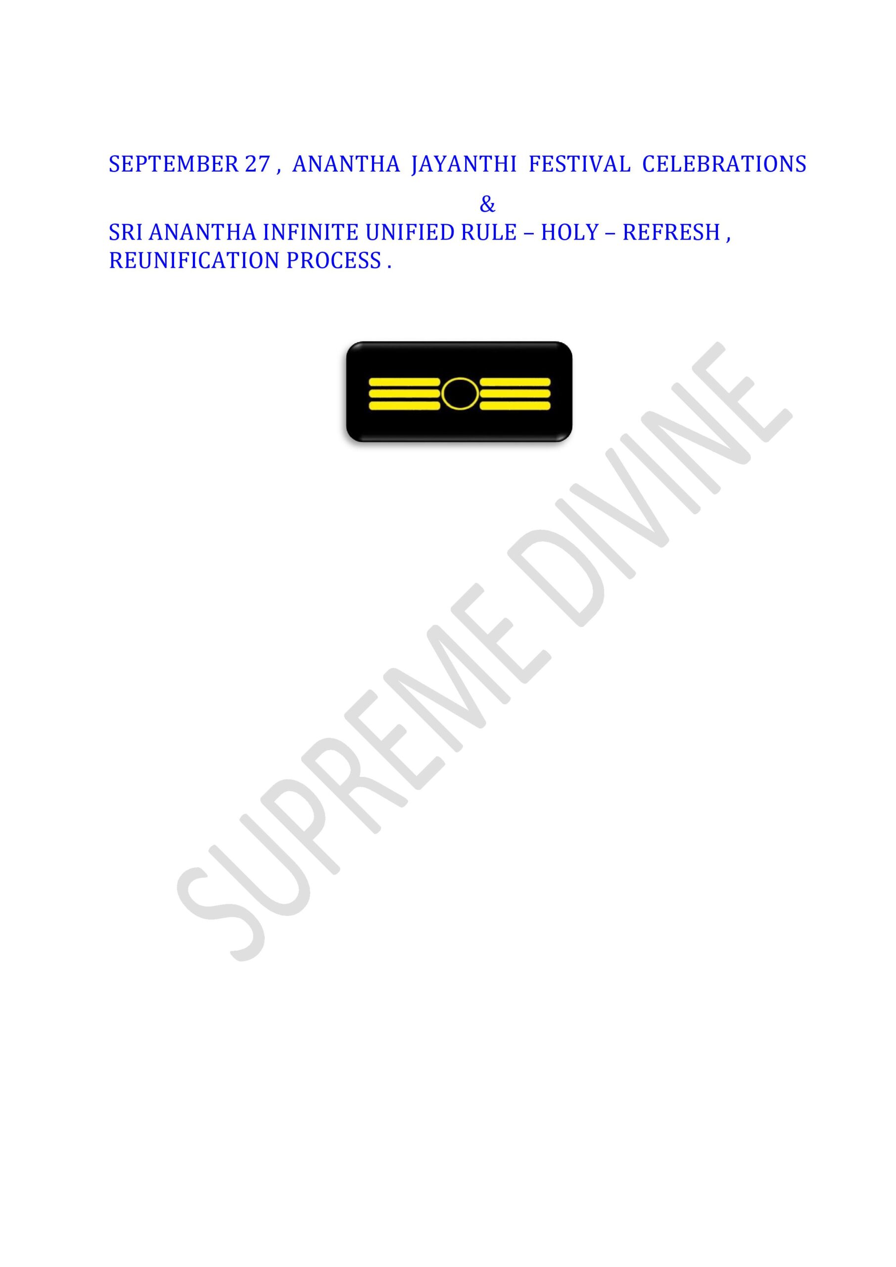 SRI ANANTHA INFINITE UNIFIED RULE – HOLY – REFRESH , REUNIFICATION PROCESS