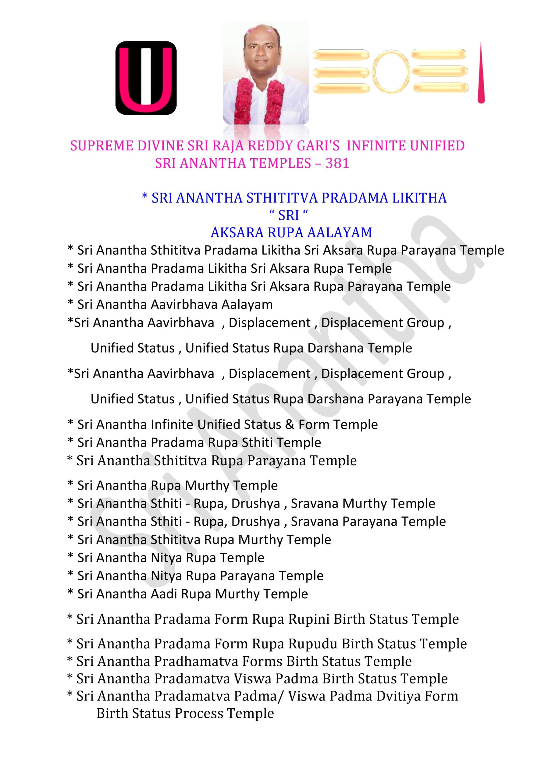 * Sri Anantha Infinite Unified Status & Form Temple