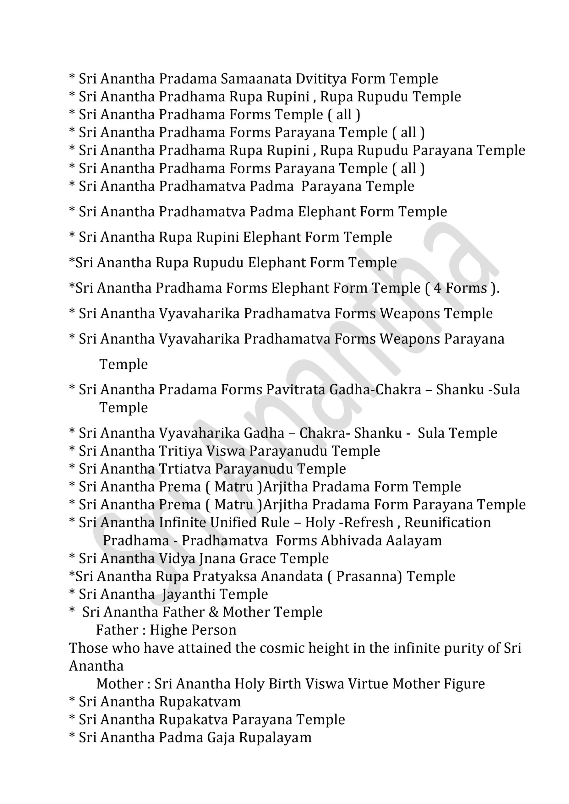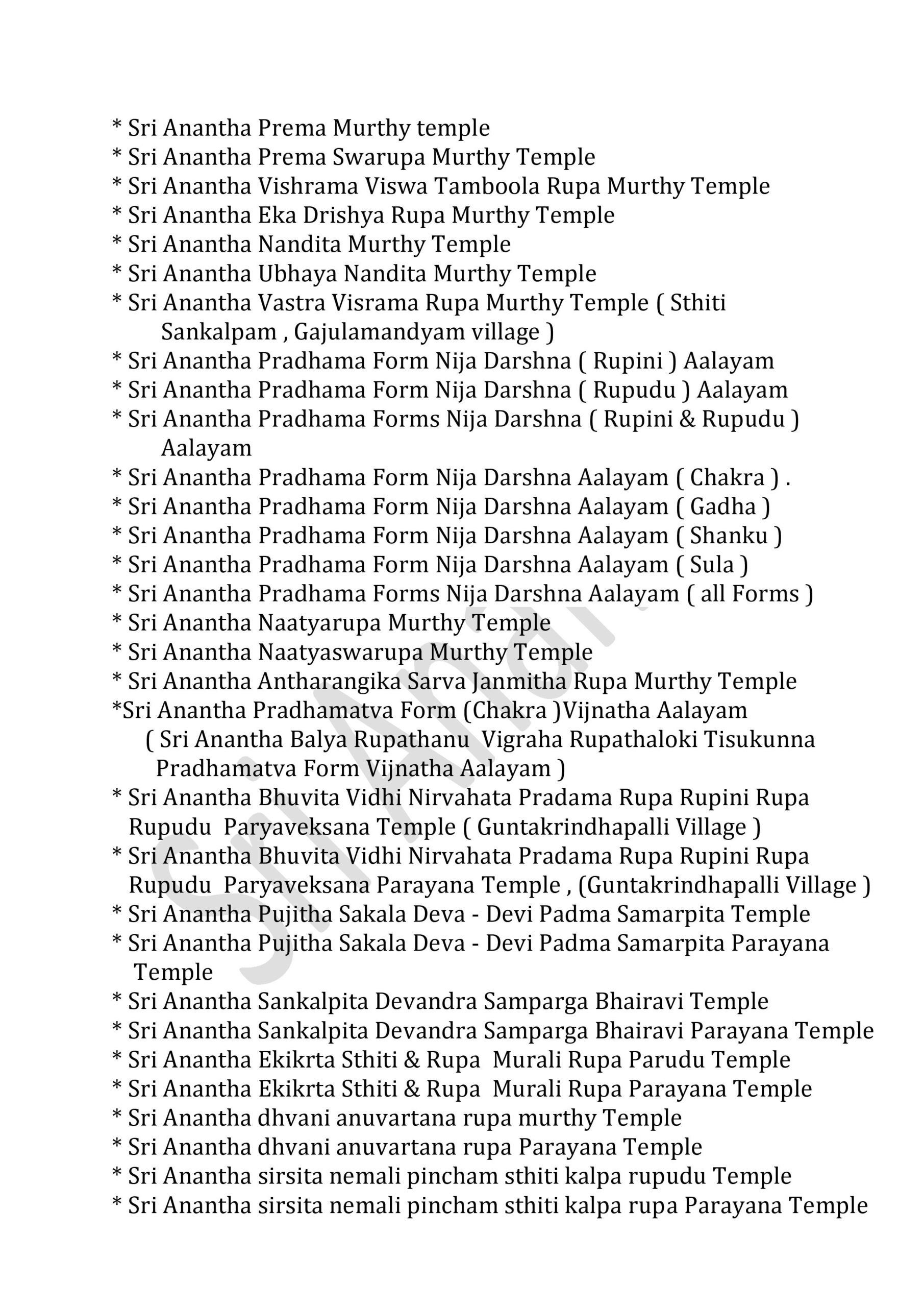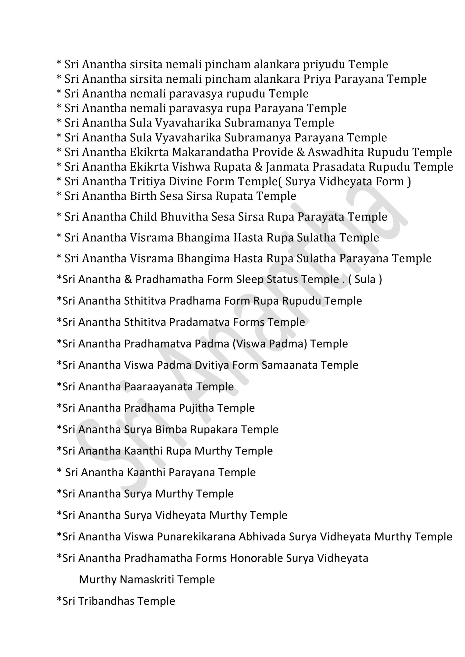 INFINITE UNIFIED SRI ANANTHA TEMPLES – 381 * SRI ANANTHA STHITITVA PRADAMA LIKITHA