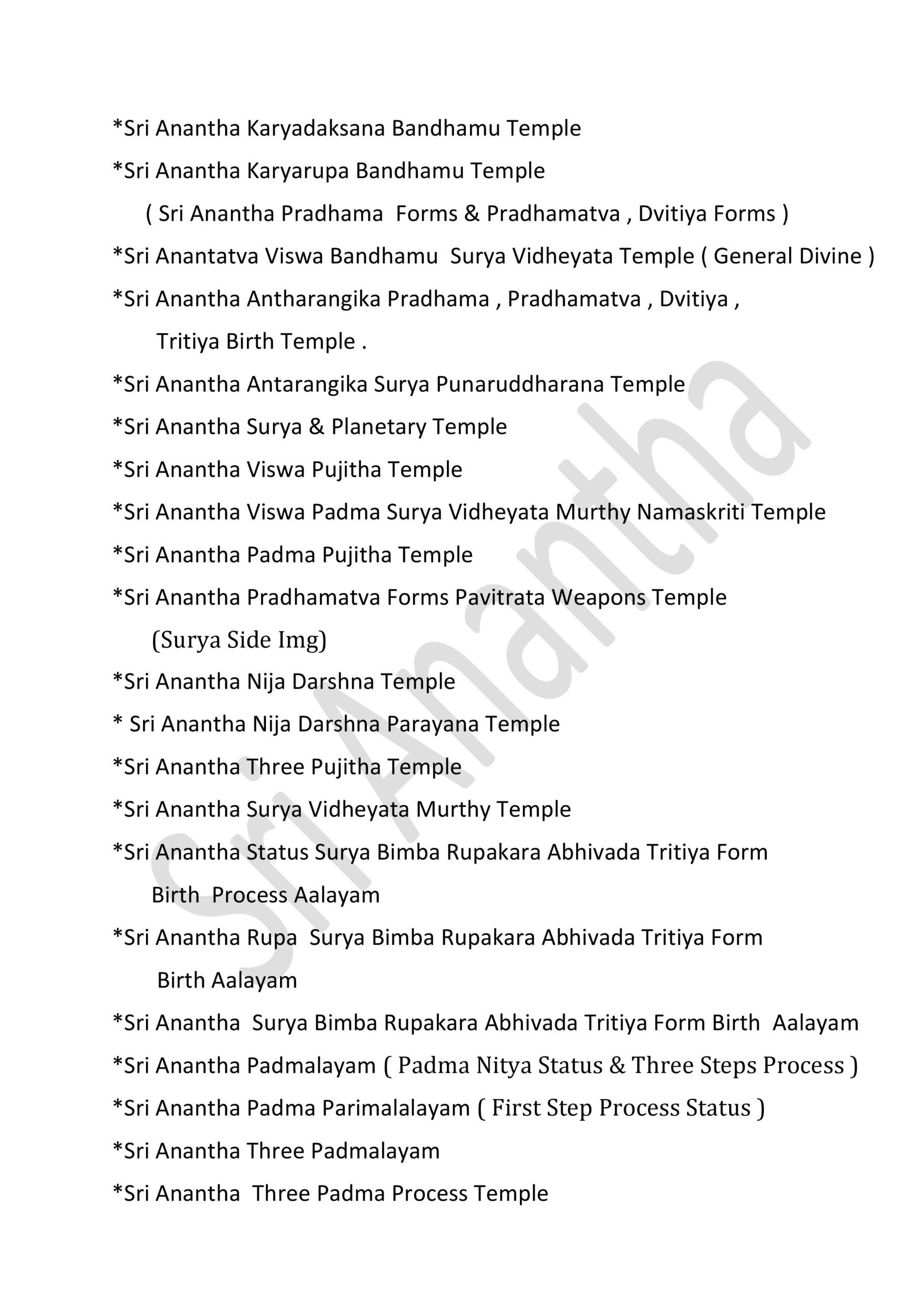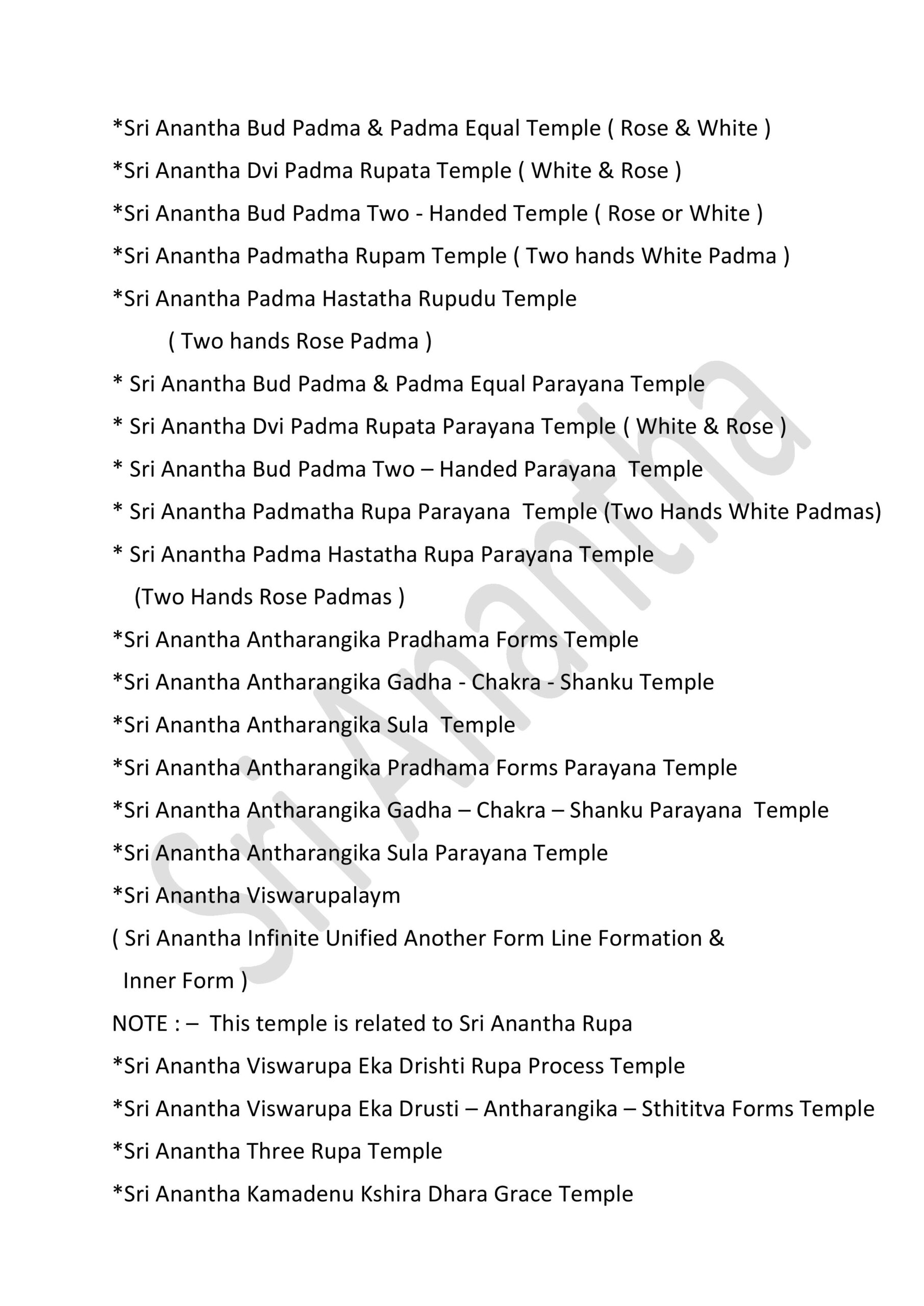 * Sri Anantha Pradhama Forms Temple ( all )